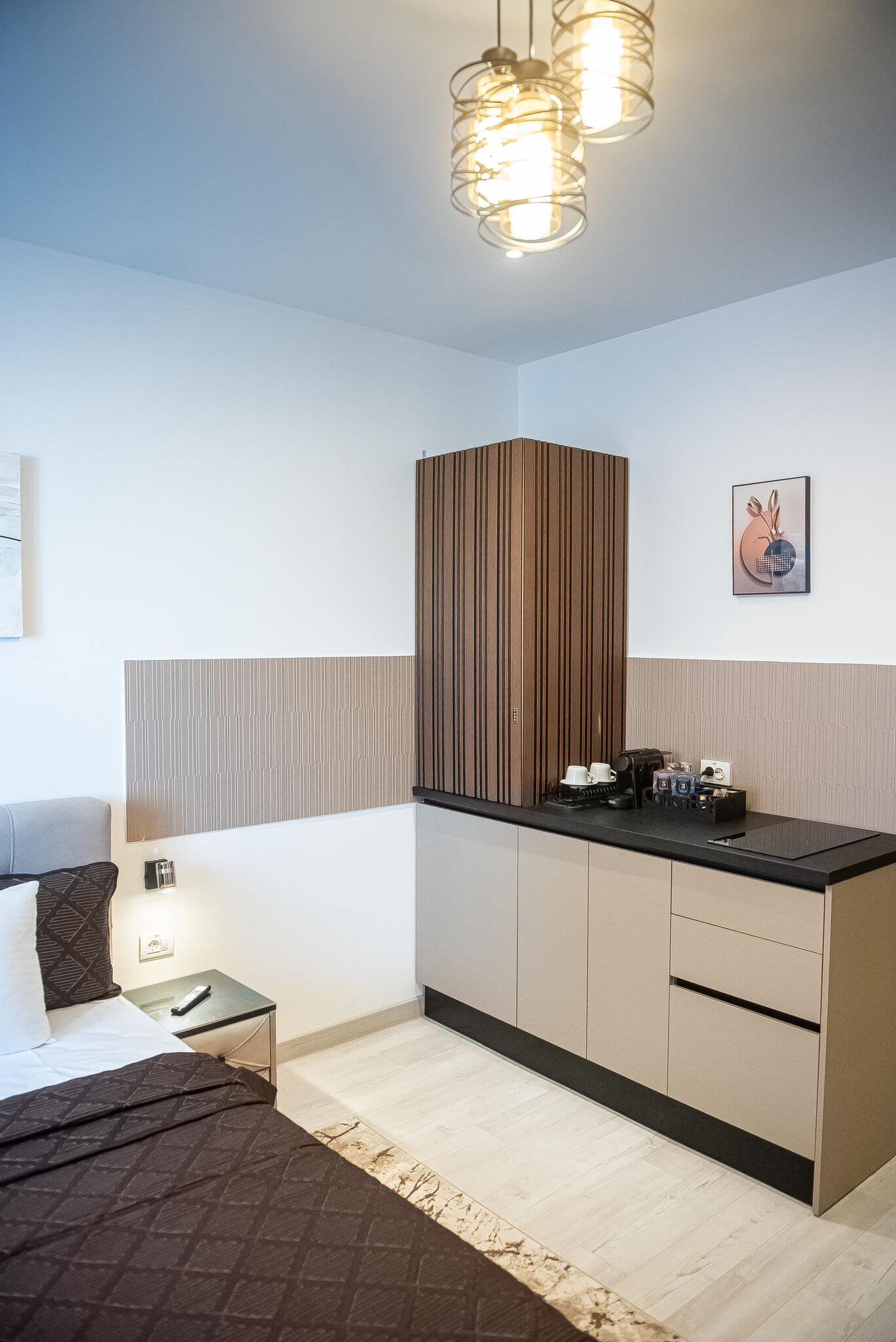 Studio Deluxe oferă intimitate, liniște și confort – toate într-un ambient elegant și funcțional.